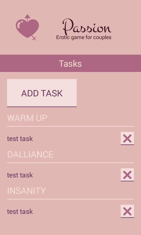 The game will also work for couples which got into a Passion melancholy and need a bit of more sensuality and excitement. This may be the beginning of an arousing foreplay. Did you run out of ideas in bed or need some kinky ideas? That's easy! Download Passion and let in a little crazy freshness and tasteful romance to your relationship. Let the desire intensify the Passion! You have our guarantee.